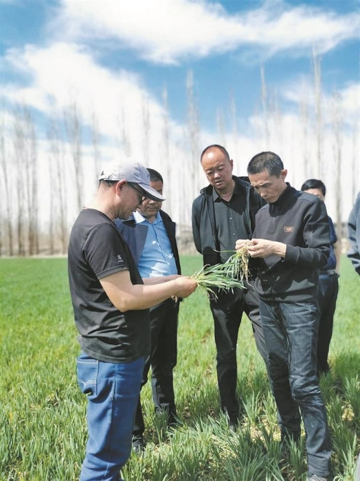 提高土地产出率,光靠先进的种植技术还不够,也需要科学的田间管理。今年2月,兵团农业农村局研究制定了《2024年冬春小麦田间管理指导意见》,督促各师市抓好春季田间管理;兵团农业技术推广总站与新疆农垦科学院、各师市农科院(所)先后组织两批小麦专家技术服务团,奔赴南北疆师团,围绕小麦缩行增密、施肥方式及各时期施肥量等情况,现场为职工群众答疑解惑、指导培训。